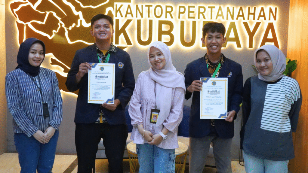 Apresiasi tersebut diberikan sebagai bentuk penghargaan atas dedikasi, kedisiplinan, dan kontribusi positif para mahasiswa selama menjalani masa KKM-Magang di Kantor Pertanahan Kabupaten Kubu Raya.