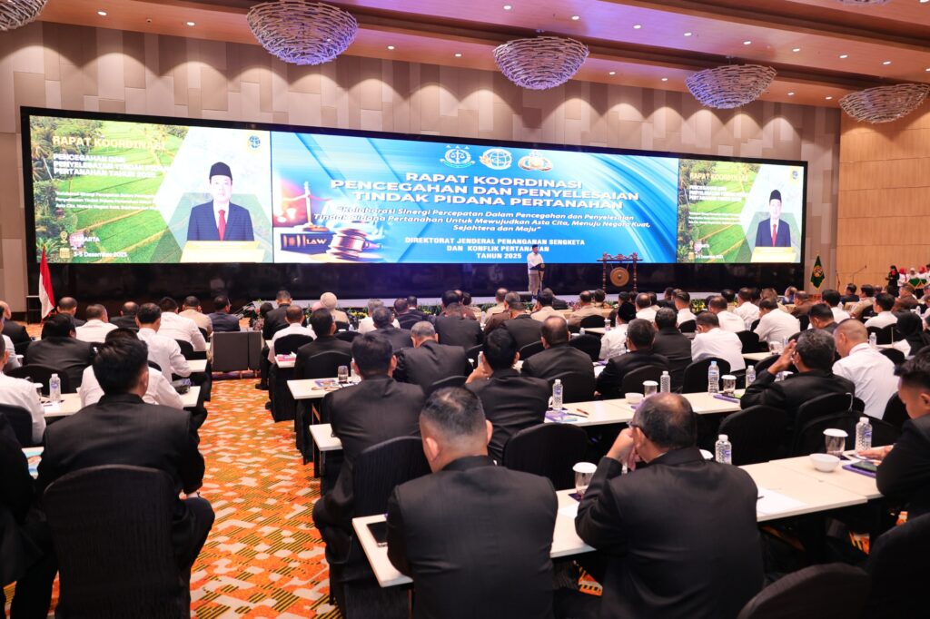 Jakarta – Menteri Agraria dan Tata Ruang/Kepala Badan Pertanahan Nasional (ATR/BPN), Nusron Wahid, membuka Rapat Koordinasi Pencegahan dan Penyelesaian Tindak Pidana Pertanahan Tahun 2025 dengan menekankan pentingnya kolaborasi bersama seluruh aparat penegak hukum (APH) dalam memberantas mafia tanah. Ia mengatakan, kejahatan pertanahan makin berkembang seiring berjalannya waktu.